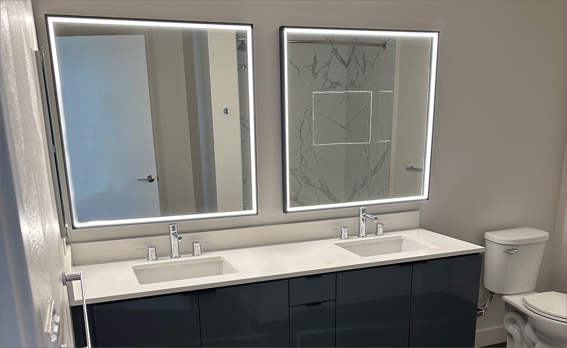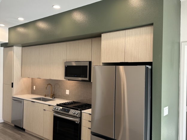 This was a 475-unit project where Granite Masterz Inc. provided, fabricated, and installed countertops, tile backsplash, porcelain slab surrounds, and tile surrounds.