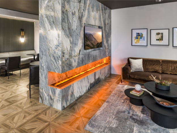 This was a 475-unit project where Granite Masterz Inc. provided, fabricated, and installed countertops, tile backsplash, porcelain slab surrounds, and tile surrounds.
